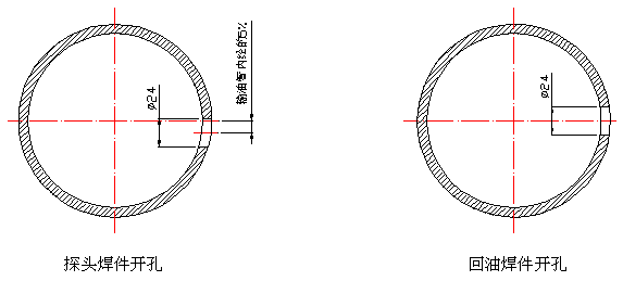 備注:探頭的45°坡口迎向來(lái)油。